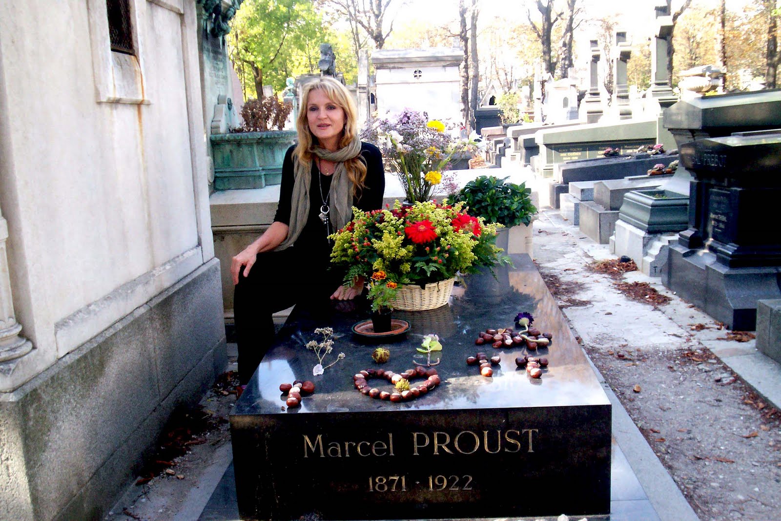 Sentada en la tumba de Marcel Proust en el cementerio Pere Lachaise, Paris, oct 2009